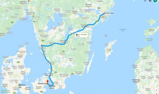 Читать дальше: Сказ о мотопутешествии в Швецию или вселенная дает сигнал. Часть 2. Готовь технику заранее! Читать историю с самого начала: Сказ о мотопутешествии в Швецию или вселенная дает сигнал. В общем решено было ехать. Взял на пару недель отпуск на работе, отложил деньги.Решили особо ничего не планировать. Хотели почувствовать дух свободы, ехать, куда глаза глядят, останавливаться в придорожных отелях, на берегах озер. Кстати, это ошибка огромная! :) Прикинули примерно такой маршрут. Из Питера как раз начал ходить паром Princess Anastasia прямиком до Стокгольма. Потом решили из Стокгольма поехать к Эрнесто на денек, оттуда в Мальме и Копенгаген. Ну а с Германией как выйдет по времени. Там, кстати, по дороге было озеро крутое. Оно как море. Думали там ночевать.Есть фотография с нашей поездки на машине. Красиво, в общем. Очень хотели туда заехать. Кстати, анонсирую: история путешествия полна фейлов, ошибок, глупостей и в итоге ничего не получилось. Но запомнилось навсегда!Решил меж