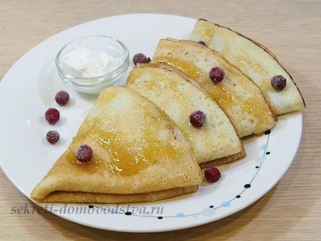 Доброго всем времени суток! Сегодня я хочу поделиться нашим семейным рецептом, как приготовить очень тонкие и вкусные блинчики с огромным количеством дырочек. Они будут настолько тонкими, что сквозь них будет просвечивать дно сковородки. Получаются они с первого раза, не липнут при жарке и отлично переворачиваются. И сразу же, в начале заметки, хочу поделиться с вами своим видео с канала Ютуб. А далее расскажу, как замесить тесто и испечь тоненькие блинчики. Тонкие блины на молоке по классическому рецепту (замес теста) Этот рецепт можно считать классическим, потому что используются здесь самые простые компоненты (их список в конце статьи) . Нет ни соды, ни кипятка, ни кефира, которые и позволяют добиваться тонкости и обилия дырочек. Но тем не менее посмотрите на результат. Если хотите испечь такие же, то читайте и сохраняйте рецепт. Заранее достать из холодильника яйцо и молоко, и то, и другое обязательно должно быть комнатной температуры. Это один из ключевых моментов успеха. 1. В м
