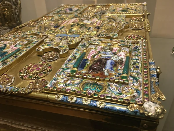 Священная книга, предмет церковной дипломатии и роскошное ювелирное изделие – все это про Евангелие из собрания Национального музея Татарстана. В своё время патриарх Московский и всея Руси подарил его своему сопернику, проигравшему борьбу за церковный престол и отправившемуся в Казань. Сегодня в проекте «1 день – 1 экспонат» изучим фолиант XVII века. После смерти патриарха Иоакима в 1690 году было два главных претендента на место главы Русской православной церкви. За Адриана выступила царица Наталья Кирилловна, а также большинство архимандритов и игуменов. Маркелла поддерживал молодой царь Пётр и часть архиереев. Оба иерарха оказались связаны с Казанью. Адриан, ставший предстоятелем в 1690 году, до этого возглавлял Казанскую епархию, а его соперник, Маркелл после поражения отправился на его место, стал митрополитом Казанским и Свияжским. Вместе с кафедрой Адриан пожаловал Маркеллу и роскошное Евангелие. Литургическую книгу изготовили еще задолго до событий, развернувшихся после сме