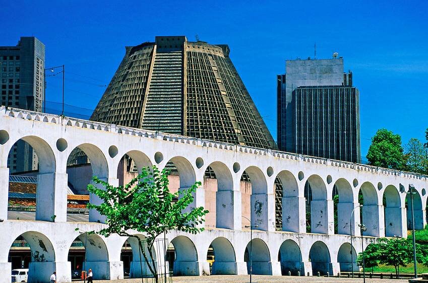 Первые попытки завести в город воду из реки Кариока были предприняты в 1602 году по приказу тогдашнего губернатора провинции Рио-де-Жанейро Мартима Коррейя де Са. В 1624 году был подписан контракт на строительство канала с Домингушем да Роча, который так и не начал работу. В 1660 году были проложены первые 600 метров труб. Далее работы продолжились в 1706 году при правительстве Дон Фернандо Мартиньш Маскареньясу Ланкастро. В 1718 году начаты работы по монтажу водопроводных труб на старой улице Баронос, за два года трубопровод достиг площади и тогдашних окраин города. Губернатор изменивший первоначальный проект, отстаивал необходимость продлить работу в Санкт-Энтони Филд (ныне Ларго да Кариока), вдохновленный акведуком в Лиссабоне. Работа была завершена в 1723 году, в результате чего вода поступила и в фонтан Кариока, также построенный в том же году. В связи с частыми жалобами на отсутствие воды с 1727 года были введены штрафы за порчу труб и вандализм, которые приписывались маронам (