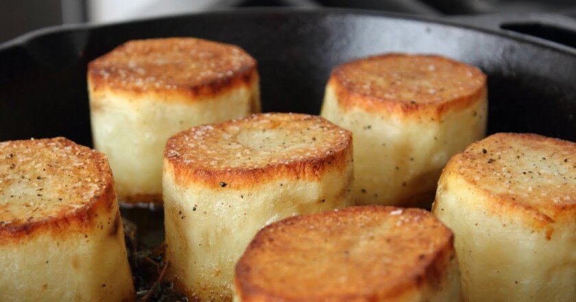Что может быть вкуснее картошки со сливочным маслом? Изысканный аромат и хрустящая корочка сделали это блюдо одним из самых популярных в ресторанах Европы. Попробуйте приготовить его самостоятельно и это блюдо заменит жареную картошку навсегда! Трамп назвал вечер после своего послания триумфальным ₽ Это Вы забыли орешки в корзинке? сегодня6:02 Дом Картофель «Фондан»: простой рецепт вкусного ресторанного блюда Фото google.com Что может быть вкуснее картошки со сливочным маслом? Изысканный аромат и хрустящая корочка сделали это блюдо одним из самых популярных в ресторанах Европы. Попробуйте приготовить его самостоятельно и это блюдо заменит жареную картошку навсегда! Подготовка Приготовление Отрежьте у картошки низ и верх, чтобы получились цилиндры. Очистите их от кожуры и разрежьте пополам, чтобы получилось 6 одинаковых столбиков, длиной около 5 см. Оставьте их в миске с холодной водой на 10 минут, а затем высушите бумажными полотенцами. Разогреваем масло на сковороде и ж