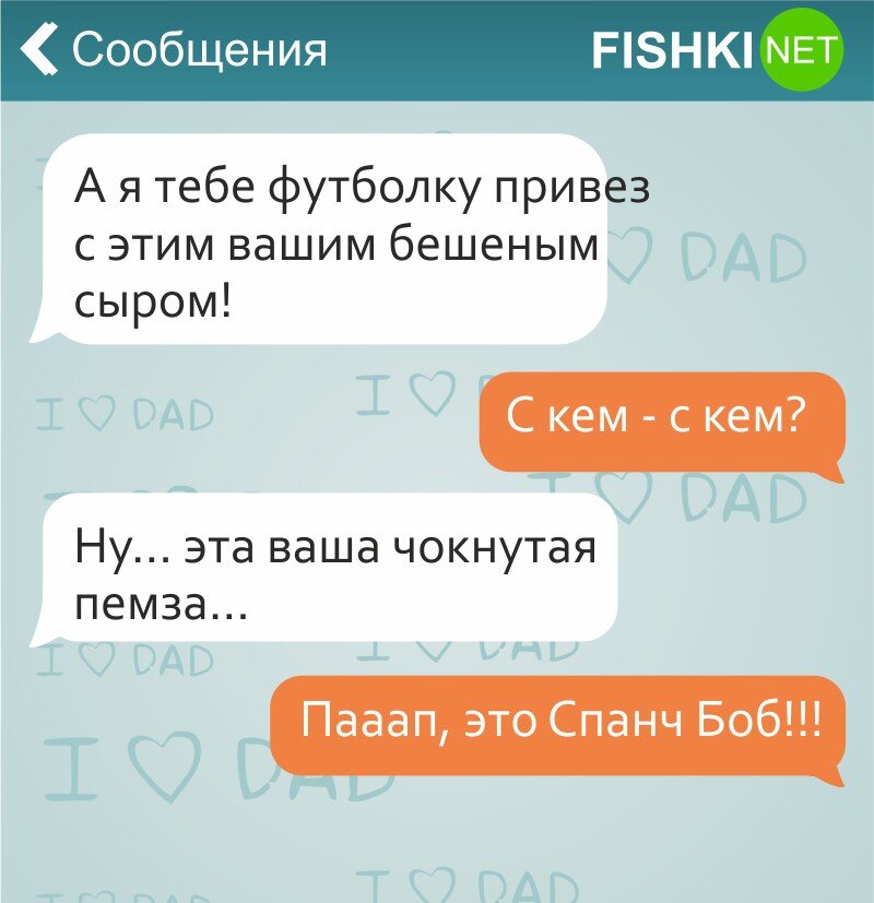 Всем привет. Сегодня я подобрал для вас еще одну порцию смешных переписок, но на этот раз с детей с папой. Как известно, отцы мало проявляют внимания в воспитании, однако с отцами всегда бывает весело. Папа с мамой ездили отдыха, а папа решил привезти маленькому сыну хороший и яркий подарок, и им оказался сыр!😀 Сын разослал смс-сообщения всем свои друзьям о предстоящей вечеринке, ведь мама с папой уехали на дачу копать картошку. Во время рассылки, парень случайно нажал и своих родителей. Папа быстро ответил своему сыну, и согласился заключить с сыном выгодную сделку. Интересно, сын согласился? Папа решил послать сына за хлебушком, но его там постоянно бьет шпана и отбирает деньги, поэтому отец решает придумать хитрый план. И как позже выясняется, этот план рассчитан на него... А вот оригинальный уход от проблемы, потому что современные проблемы, требуют современных решений. Папа просто решил отказаться от своего сына попавший камнем в соседский мерседес. Сын рос и всегда не мог понят
