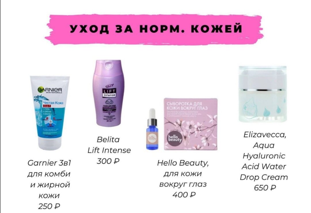 НОРМАЛЬНЫЙ ТИП КОЖИ Как вы знаете, существует четыре основных типа кожи: нормальный, сухой, жирный и комбинированный. Сегодня мы поговорим именно о нормальном типе, самом редком. У нормальной кожи здоровый, розоватый цвет лица. Нет жирного блеска, сальные железы работают умеренно. Количество высыпаний минимализировано и не зависит от времени года или фазы цикла. 👵 Нормальная кожа может оставаться свежей в любом возрасте, так как меньше всего склонна к старению. Но это не значит, что за ней не нужно ухаживать! Выполняйте все этапы ухода: снятие макияжа, очищение, тонизирование, увлажнение, — в соответствии с рекомендациями. ❗️Также не нужно перегружать кожу уходом. Использовать множество сывороток и масок, если ваша кожа того не требует. Всегда ориентируйтесь на индивидуальную реакцию. В общем, в уходе за этим типом кожи нет сложностей, но мы откроем вам пару важных нюансов. Они помогут поддерживать хорошее состояние лица. 1️⃣ Мягко очищайте кожу. Главное — не пересушить её! 2️⃣