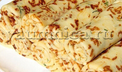 Блины и блинчики – это самые любимые блюда в русской кухне. Особенно они популярны на Масленицу. Разве есть среди нас тот, кто откажется от блинов? Это русское блюдо любимо не только детьми, но и взрослыми. Рецептов приготовления этого блюда множество. Какие только не готовят блины – заварные, дрожжевые, гречневые, на кефире и молоке, на йогурте и пиве. Все и не перечислишь. Я хочу вам предложить приготовить блины с сыром и зеленью. Для приготовления нам будут нужны вот эти ингредиенты: