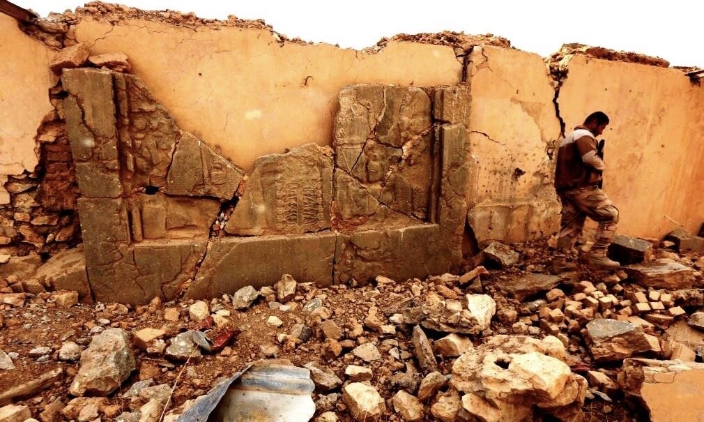 Расположенные на севере современного Ирака остатки некогда величественного города Нимруд, который в древности назывался Кальху, а в Библии упомянут как Калах, были разрушены пять лет назад боевиками ИГИЛ. Для разрушения древней столицы Ассирии они пригнали тяжёлую технику, а храм бога Набу взорвали. Набу ассирийцы считали покровителем писцов и каллиграфов, а также богом мудрости. Её-то террористам ИГИЛ явно не хватало. В 2016 году иракская армия восстановила контроль над городом, но множество артефактов были утеряны безвозвратно.