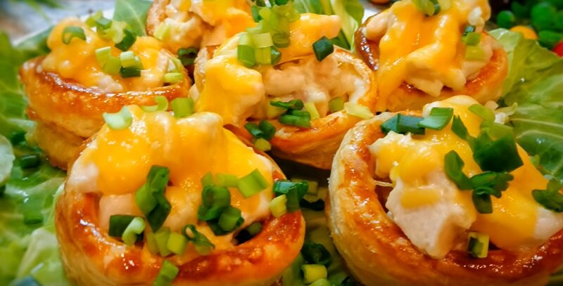 Слоеные корзиночки с курицей и сыром: закуска быстрого поедания на скорую руку