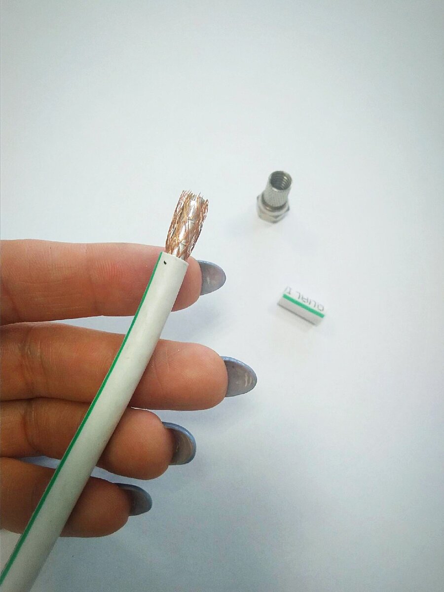 Внимательно и аккуратно зачищайте коаксиальный кабель при накрутке F-коннектора. Оплетка не должна попадать на жилу кабеля.