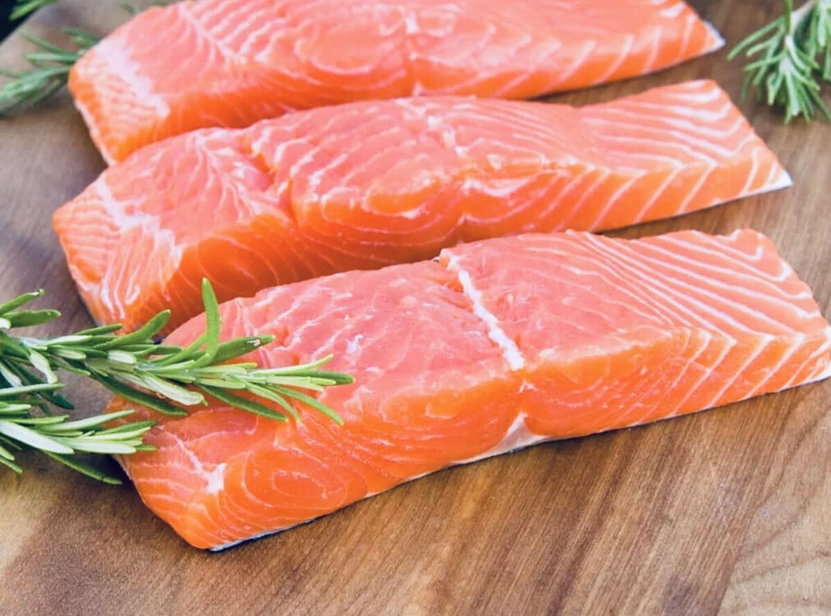 • Одним из самых полезных продуктов для волос является лосось и другая жирная рыба. Она насыщена жирными кислотами омега 3, а Так же в подобной рыбе много белка ,витамина Б 12 и железа, которые питают и укрепляют волосы.
