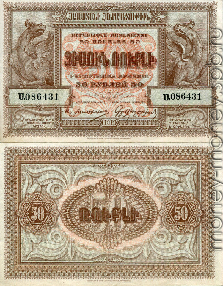 В июне 1919 года Грузия, а вслед за ней Азербайджан отказались от единых денежных знаков Закавказского Комиссариата и начали печатать национальные деньги. Решение этих республик поставило Армению в очень тяжелое финансовое положение. Она вынуждена была, в свою очередь, приступить к выпуску бумажных денег, которые в отличие от грузинских и азербайджанских денег, не могли быть ничем обеспечены, да и полиграфические возможности для их выпуска были значительно хуже, чем в соседних республиках. Поэтому правительство Армении приняло решение изготовить свои национальные деньги в Англии, где в то время была хорошая полиграфическая промышленность и услугами которой пользовались многие страны. Во второй половине 1919 года в Лондон командируется представитель министерства финансов для заказа технически совершенных бумажных знаков достоинством в 50, 100 и 250 рублей, всего на сумму 300 миллионов рублей. Эти деньги, впоследствии получившие в народе название "лондонских", были заказаны в Лондонс