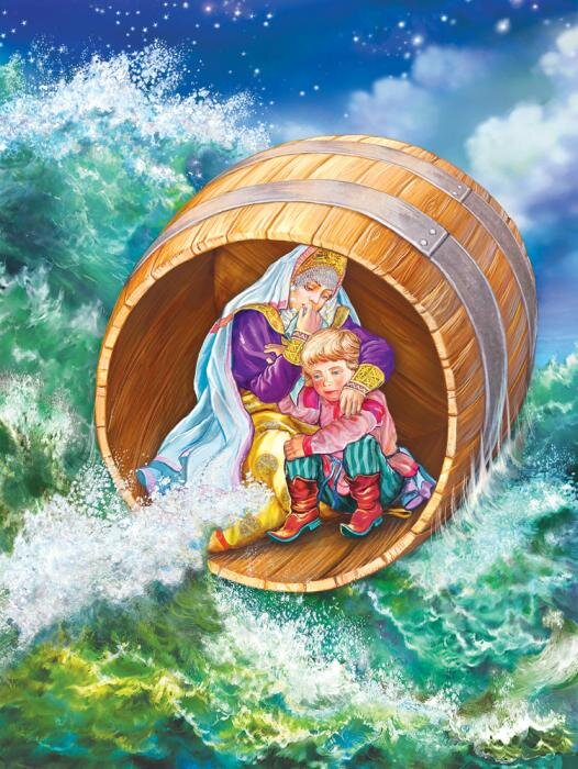 Теперь о том, почему именно бочка, и почему пустили ее по воде. В одной из сказок прямо говорится: «Нельзя царской крови лить». Царская кровь – священная, поэтому с представителями царской власти обходились так же, как и со священными предметами – либо сжигали, либо по воде «сплавляли» в Рай. Миф о чудесном младенце, приплывшем в царство в бочке, в корзинке или ином предмете, созданном руками человека - один из распространенных (вспомним хотя бы малыша Моисея, ставшего предводителем евреев Египта).