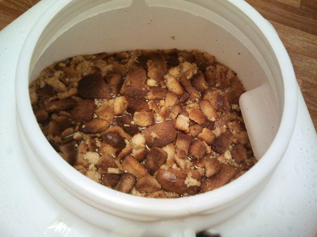 У вас есть много черствого хлеба или сухарей. Из них можно приготовить брагу с последующей перегонкой. В одной буханке хлеба весом 900 гр содержится 590 грамм крахмала, но крахмал, конечно, сам по себе не забродит, его можно расщепить до глюкозы, которую так любят дрожжи. Сделать это можно солодом или ферментами. Примерный выход АС-210 мл с килограмма сухарей. Ингредиенты: Как сделать: