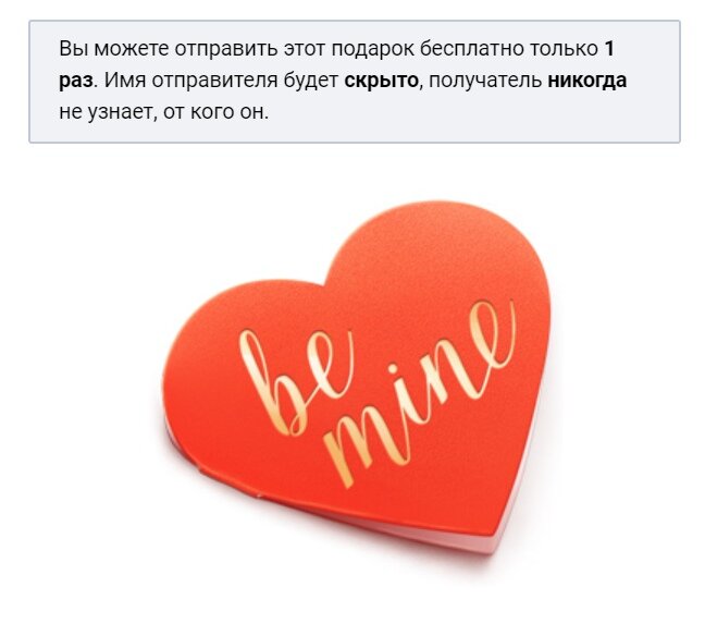 В вконтакте доступен 1 бесплатный подарок,ко дню всех влюблённых Порадуйте своих любимых отправив им валентику,в следующий теме покажу как отправить подарок ВЛЮБЛЕННЫЙ СЕНЯ бесплатно :) День свято́го Валенти́на (также Валентинов день), или День всех влюблённых — праздник католического происхождения, который отмечается 14 февраля во многих странах мира. Назван по имени одного из двух раннехристианских мучеников с именем Валентин — Валентин Интерамнский и Валентин Римский.