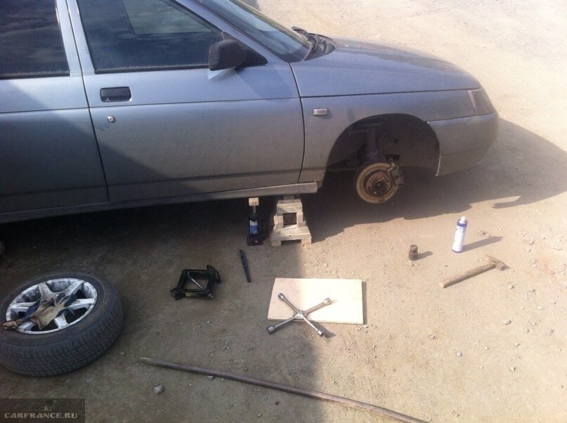 Рассмотрим как менять тормозные колодки на автомобиле ваз на примере 2110. Необходимые инструменты, приспособления, запчасти — Рожковый ключ на «17» — Накидной ключ или головка на «13» — зубило — Монтажка — Металлическая щетка — комплект передних тормозных колодок. Процес работы: Поддомкрачиваем автомобиль и снимаем одно из передних колес Очищаем тормозной механизм переднего колеса от грязи — Вынимаем тормозной шланг из кронштейна на стойке