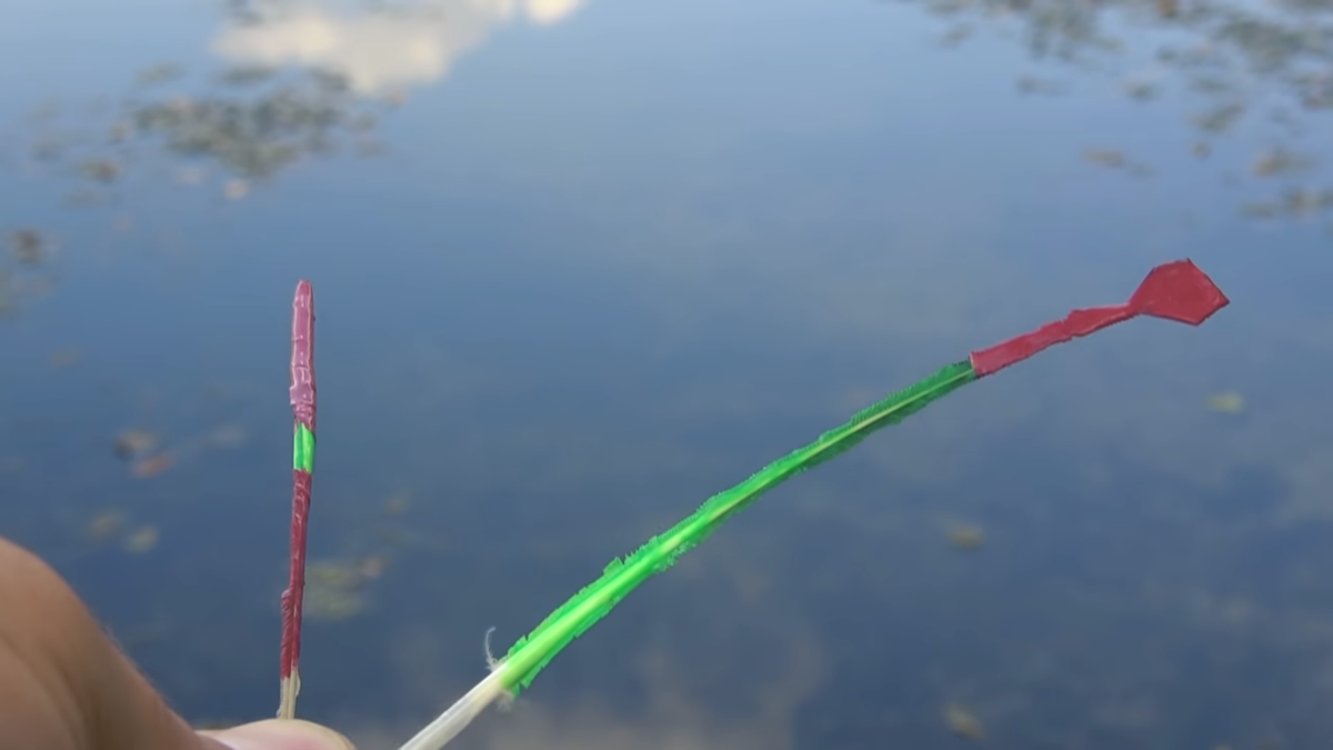 Для начала необходимо обстричь перо при помощи ножниц не повредив сердцевину, если ножниц под рукой нет то можно опалить зажигалкой. Поплавок готов, а для того что бы поплавок было видно из далека его можно покрась лаком для ногтей, это не только сделает поплавок заметнее но и укрепит его.