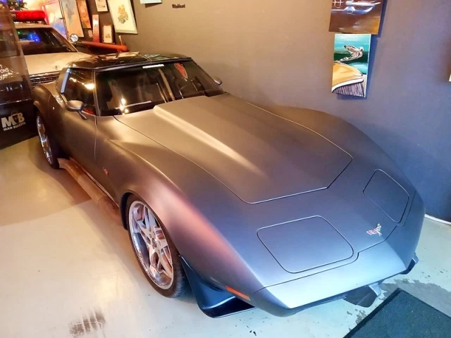 Открыв дверь музея, мы прямо таки уткнулись в Корвет третьего поколения. Производился это спорткар с 1968 по 1982 год и оснащался широким спектром двигателей — объемом от 5 до 7.4 литров и мощностью от 205 до 390 лошадей. Рядом с этим автомобилем не было никакой таблички, так что я не могу сказать, какого года выпуска эта машина и что у нее под капотом.