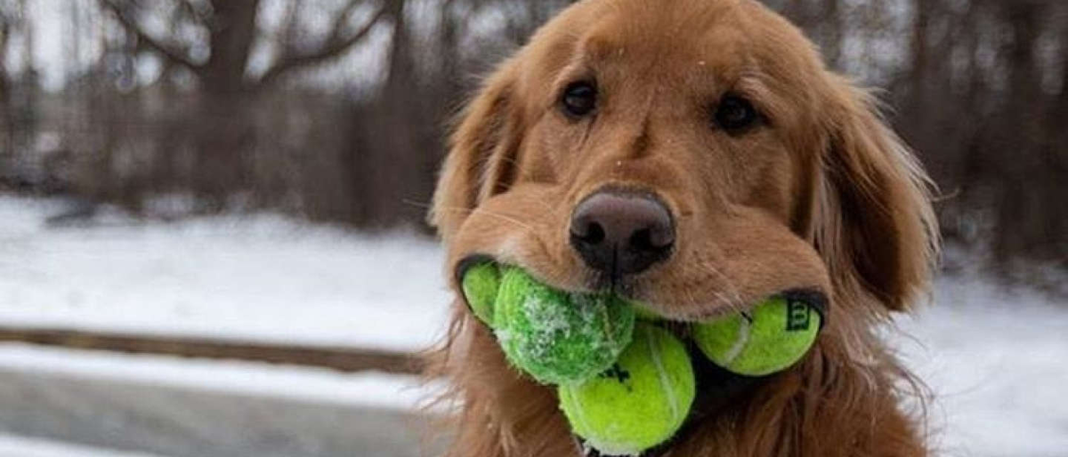 Собачий рекорд: золотой ретривер Финли запихнул в рот 6 теннисных мячиков