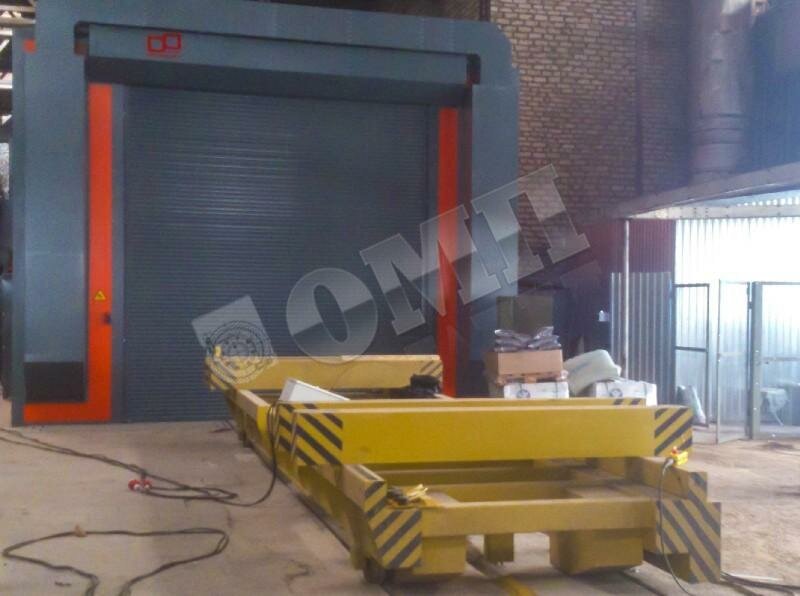Компания «ОМП» разрабатывает и выпускает по индивидуальным заказам механизированные тележки для работы в экстремальных условиях: при высоких и низких температурах, в агрессивной среде, под открытым небом, во взрывоопасной атмосфере. Этим мы успешно занимаемся с 2005 года. Длительное нахождение цеховой тележки в зоне высоких температур – например, в сушильной камере – может неблагоприятно сказываться на работоспособности и ресурсе электродвигателей, это также следует принимать во внимание. В данном случае может оказаться более целесообразно использовать привод тросом. Для высоких температур применяется также термостойкая двухкомпонентная окраска металла. Загрузка деталей в пескоструйную/дробеструйную камеру внутрицеховой тележкой подвергает её воздействию крайне агрессивной и абразивной среды. Для защиты подшипников колёс используются закрытые буксы и доходящие почти до пола борта ходовой балки. Для работы во взрывоопасной атмосфере (например, в покрасочной камере) используются мотор