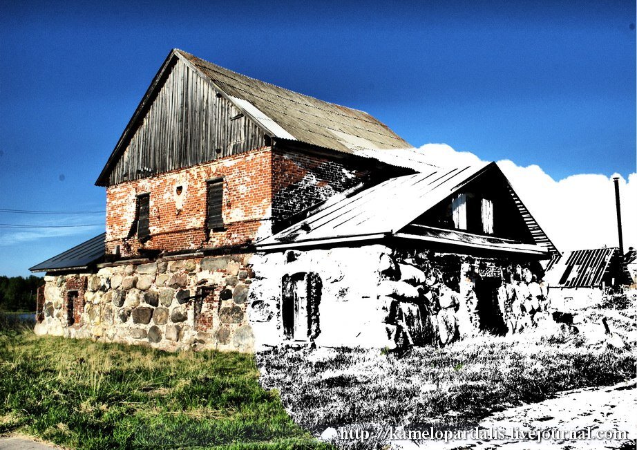 Ряд зданий XVIII-XIX вв. в северной части Соловецкого поселка. Вроде под охраной, вроде и нет. Вроде есть, вроде нет. Вроде развалились, а вроде и стоят еще. Поэтому - половинчатые. Если идти по северной дороге от монастыря мимо Центрального Велопроката, то первым на вашем пути будет сие невзрачное здание. Соловецкий летописец сообщает нам дату ее постройки: «1760 года у кожевни подле Гагарского озера зделана кирпичная поварня для крашения кож». Эта постройка видна на гравюрах кон.XVIII – начало XIX вв. Назначение сооружения в XIX веке не известно. В советское время, в годы войны, помещение было приспособлено под баню, пока ремонтировалось соседнее помещение – бывшей «мирской бани». После войны здесь была прачечная.