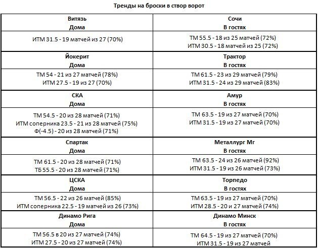 Подборка по броскам в створ на оставшиеся игровые матчи
