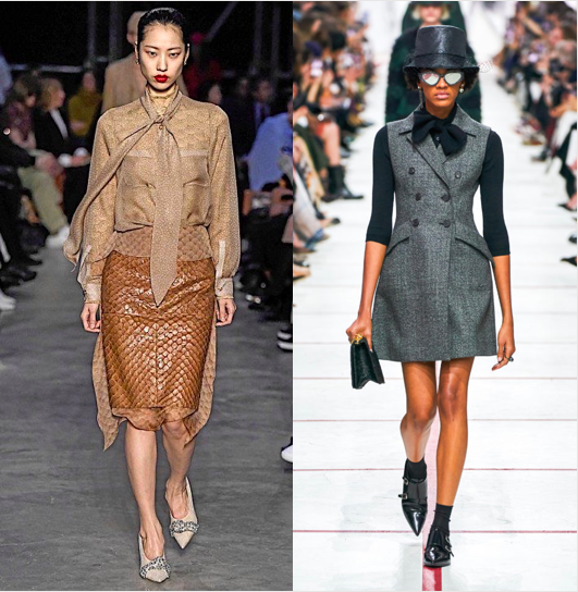 Банты на шее в моде уже не первый сезон. Их показали во многих показах: Balenciaga, Celine, Christian Dior, Elie Saab, Loewe и тд. Они с нами и в грядущем весенне-летнем сезоне. Мне эта тенденция прям по душе, потому что необязательно покупать блузу, а можно носить бант с любым верхом, хоть с рубашкой, хоть с джемпером. Поверх рубашки или любой блузы, при чем необязательно тон в тон. Поверх практически любой модели свитера. Сам же бант можно воссоздать, как из тонкого шарфика или скрутив квадратный, так и из толстой ленты из атласа или органзы, купленной в любом швейном магазине. Если шарфик цветной однотонный, то классно комбинировать его в монохроме (оттенки одного цвета) или с родственными оттенками: синий+зеленый, синий+фиолетовый (можно подсмотреть на цветовом круге цвета, они располагаются рядом друг с другом). А если хочется усилить сочетаемые цвета, то используйте контраст (на цветовом круге они находятся друг напротив друга). Если шарфик с принтом, то кофту выбирайте в любой