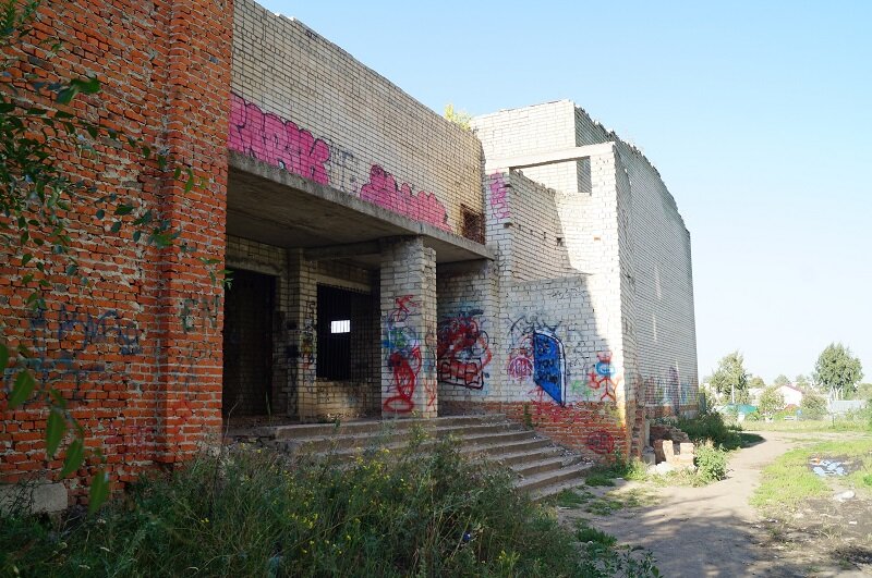 Это была недостроенная школа, которая была не особо страшной, лишь одна комната наводила на меня жуть - недостроенный туалет с пентаграммой на стене и каким-то колом из дерева на полу. Там дико воняло дохлятиной, от чего у меня подступала рвота. Снаружи это здание ни чем не отличалось от подобных заброшек. Самое интересное было внутри.