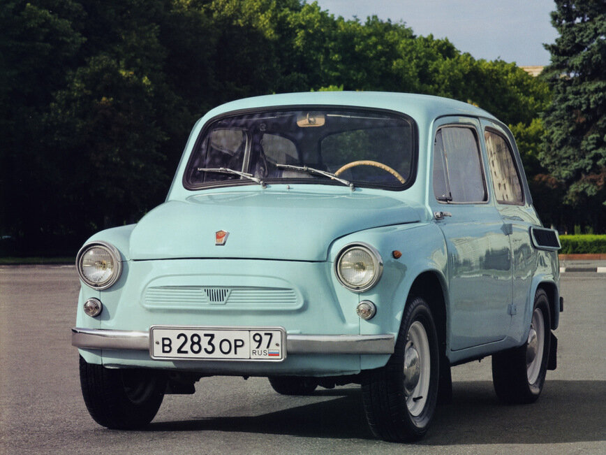 ЗАЗ-965А «Запорожец» был настоящим советским «народным автомобилем», производимый на заводе «Коммунар» в Запорожье с 1962 по 1969 год. Всего было выпущено 322 166 таких автомобилей. Он комплектовался заднерасположенным двигателем воздушного охлаждения МеМЗ-966 мощностью 27 л.с. и объемом 887 куб.см. В 1965 году за счет нового карбюратора мощность была увеличена до 30 л.с. Автомобиль экспортировался в европейские страны через бельгийского экспортера Jalta, а в Финляндию машины шли под маркой Yalta. При проектировании за основу был взят итальянский Fiat 600 из-за своей удачной и прогрессивной для массового производства конструкции кузова. В отличии от Fiat 600 «ЗАЗ-965А» имел трехобъемный кузов типа «двухдверный седан» с четко выделенным объемом багажника моторного отсека в виде «горба» и большим задним стеклом, унифицированным с лобовым. Подвеска была на двойных продольных рычагах с двумя поперечными торсионами в качестве упругих элементов. На дорогу автомобиль опирался с помощью 13-дю