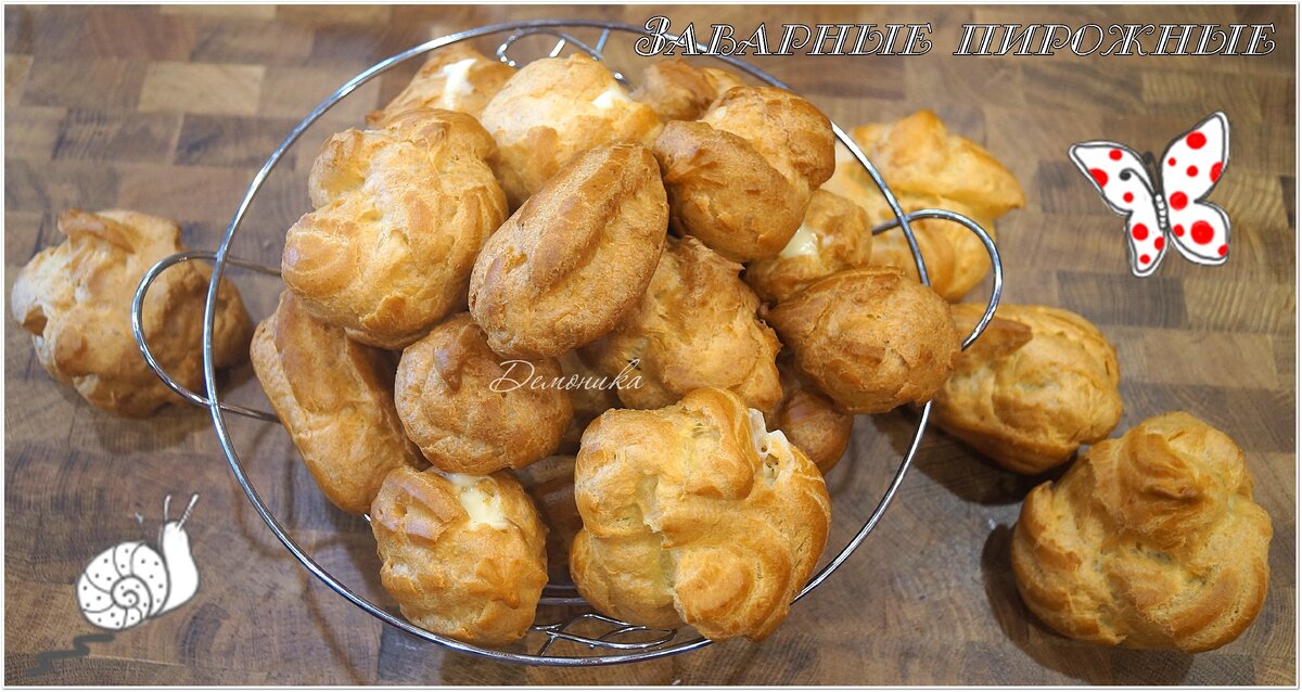 Не секрет, что мужчины чаще всего сладкоежки. Может стоит подарить своим любимым на праздник не традиционные носки, а корзиночку с пирожными? Предлагаю сделать вкуснейшие заварные и убить целую тучу зайцев: во-первых, потратим минимум сил и средств, а во-вторых, пирожных будет оооочень много и ваш сладкоежка будет на седьмом небе. Поехали? Тогда за продуктами!