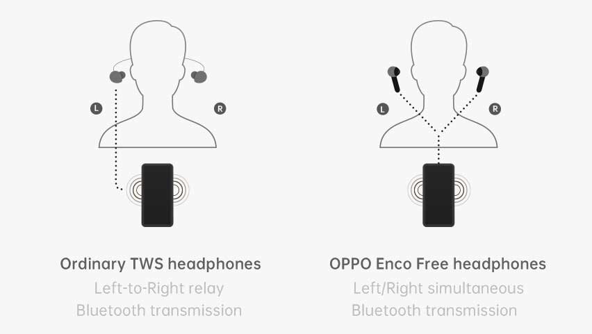 В прошлом году была представлена новая волна прослушивания аудио — с акцентом на элегантный минималистичный дизайн наушников TWS. TWS расшифровывается как True Wireless Stereo — который, как следует из названия, обеспечивает возможность прослушивания аудио без каких-либо проводов. Аудиоустройства такого типа удобно стоят в ушах пользователя и функционируют благодаря интуитивно понятным и простым в использовании умного элементами управления. Некоторые популярные функции наушников TWS включают возможность подключения Bluetooth 5.0, умное управление, стильный и эргономичный дизайн и, конечно же, высокое качество звука. Давайте углубимся в то, что делает OPPO Enco Free лучшим выбором TWS! Бинауральная одновременная передача Bluetooth True Wireless Stereo и Bluetooth 5.0 позволяют разделить аудиовыход на две колонки (одна расположена в левом ухе, а другая — в правой). Эта одновременная передача обеспечивает более сильный сигнал и более точную стереосинхронизацию. Кроме того, он позволяет