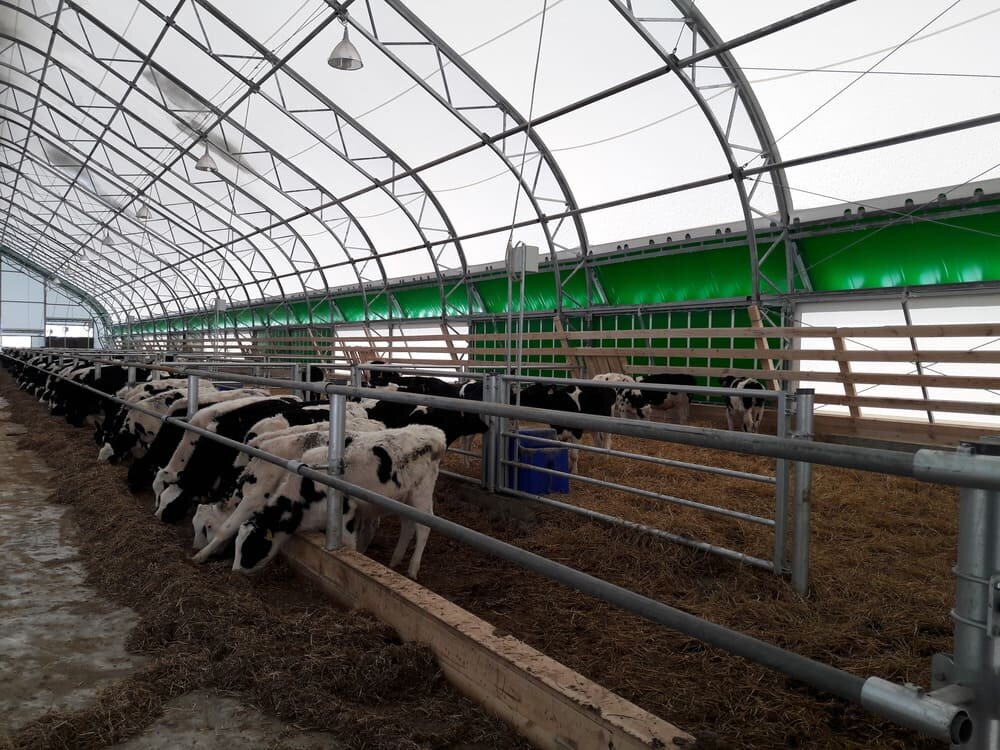 Строительство коровника или телятника может быть осуществлено с помощью капитальных конструкций с массивным фундаментом или облегчённой формой здания на основе каркаса из профильной трубы. Тентовые конструкции для животноводства — это современный не трудозатратные, относительно капитальных строений, вариант строительства ферм для КРС (крупного рогатого скота) и телятников. Защитить коров от дождя, ветра и температурных излишеств помогут наши Каркасно-тентовые коровники.