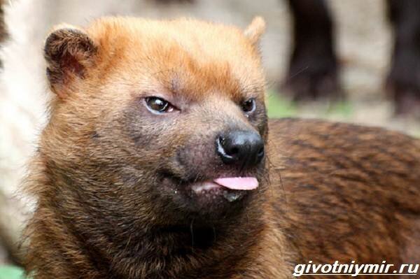 А вот и кустарниковая собака. Вызвала она к себе всеобщий интерес тем, что считалась вымершей. Кустарниковая собака (от лат. Speothos venaticus) относится к отряду хищников, семейству псовых. Этот удивительный зверь внешне мало напоминает собаку - больше он похож на барсука или выдру. По всей вероятности, это связано с его полуводным образом жизни, ведь кустарниковая собака очень много времени проводит в воде или рядом с ней - у нее даже есть перепонки на лапах. Эти животные не отличаются крупными размерами: высота взрослой особи в холке достигает 30 см, длина тела - 75 см, а масса - 7 кг. Кустарниковая собака обитает в Центральной и Южной Америке (Панама, Аргентина, Колумбия, Бразилия, Гайана, Перу и Боливия). Заселяет леса и саванны, всегда держится водоёмов. Животное ведёт смешанный образ жизни, днём и ночью может быть активен. Логово для себя вырывает в рыхлой земле, в поваленных высохших брёвнах, не брезгует покинутыми норами. Так как животное приземистое, то оно отлично себя чу