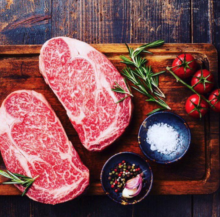 ПАРУ СЛОВ О МРАМОРНОЙ ГОВЯДИНЕ 🥩 Мраморная говядина получила своё название из-за поразительного сходства благородного камня со срезом мяса. Говядину насыщенного тёмно-красного цвета повсеместно пронизывают мелкие и тонкие прожилки белого легкоплавкого жира, который при термической обработке пропитывает мясо, отчего вкус готового блюда получается необычайно нежным и сочным. История мраморной говядины началась в середине XIX века в Японии, где бычков особых пород выкармливали по специальной технологии, в буквальном смысле обездвиживали их, подвешивая на вожжах в стойлах. Кормили бычков отменным зерном, поили пивом, ежедневно делали вибромассаж, чтобы мышцы были в тонусе, и в обязательном порядке бычки слушали классическую музыку. Так получалось мясо, именно с прожилками жира, нежное и деликатесное. До сих пор по этой технологии выращивают бычков, мясо которых самое дорогое в мире (калоризатор). Японская мраморная говядина имеет больше 100 разновидностей, каждая из которых имеет назва