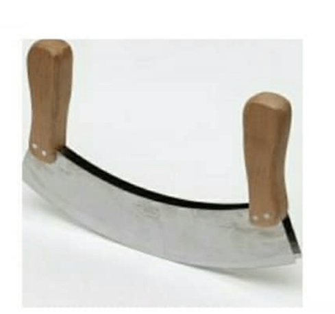 Дугообразный большой нож с двумя ручками. Таким местные хозяйки рубят молохèю. Но помимо этого такой прибор можно использовать абсолютно для любых трав. ( Molokhèya - зелёное лиственное растение, из которого готовят слизистый суп). Нож для удаления сердцевины овощей. Им вынимают середину из маленьких баклажанов и кабачков, которые потом начиняют рисом. ⠀ Ручной пресс для лаймов. ⠀Очень быстро и тщательно выжимает сок. Огромный круглый поднос. Некоторые едят прямо на нём, поставив на стол, либо на пол. ⠀