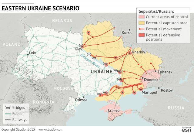 Американская компания «Stratfor» провела очередное стратегическое моделирование, целью которого было рассмотрение сценариев вторжения русских на Украину, а то и «прямого конфликта российских и западных сил» на украинской территории. Шесть предложенных «сценариев» — это не прогноз, а, как заявляют сами аналитики, материал для принятия возможных политических решений, явившийся результатом «тщательного обследования военных возможностей России и НАТО».