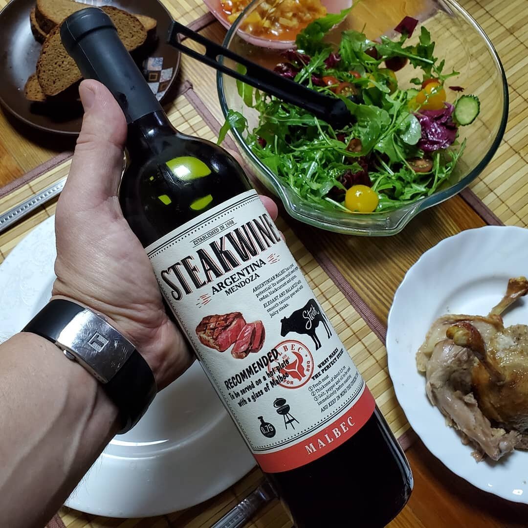 Итак представляю вам один из вариантов: Steakwine Malbec 1998 Друзья, думаю эту бутылку вы видели не раз в супермаркетах и гипермаркетах. Интересная креативная этикетка побуждает его купить к стейку, да и просто к мясу, согласны? Это классика жанра, если мы говорим о Франции подразумеваем Бордо и Каберне Савиньон, Италия - Тоскана и Санджовезе, Испания - Риоха и Темпральнинье ну а если Аргентина - то однозначно Мендоза и Мальбек. Итак, Steakwine Malbec 1998 Аргентина, провинция Мендоза