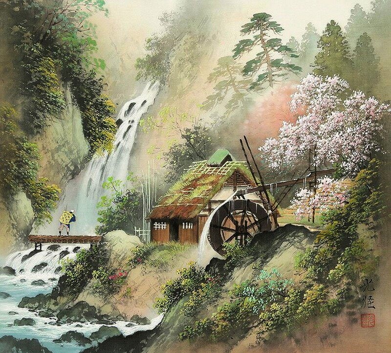 Коукеи Кодзима (小島光径) — современный японский художник, который создает свои работы на шелке в стиле «сансуй». Умиротворяющие пейзажи выполнены в характерной творческой манере. Кодзима тщательно взвешивает каждый штрих, каждый мазок, делая их идеальными, а цвета — нежными и приглушенными. Картины выглядят немного выцветшими, старинными, словно передаются из поколения в поколение уже много десятков лет и наследуют, кажется, японскую живопись тушью Суми-э. Термин «сансуй-га» в японской живописи означает «картины гор и вод». Горы – символ мужского, твердого и устойчивого, начала Янь. Вода – символ женского, текучего и изменчивого Инь. Коукеи Кодзима изображает идеальную Японию. Основная тема – вечный круговорот времен года и жизнь, струящаяся, как вода в горных реках. Обязательной, но очень малой частью почти в каждом пейзаже присутствует человек (истинный герой произведений в стиле «сансуй» – крестьянин, живущий простой жизнью в согласии с природой). Никаких бурных страстей, лишь радость