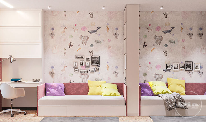 Двухъярусная кровать — не всегда выход из ситуации, когда у Вас двое детей и одна комната для них. В Студию DIA поступил вопрос от Заказчиков, каким образом расставить мебель в детской комнате, если от двухъярусной кровати было решено отказаться. На изначальном планировочном решении дизайнер расположила двухэтажную кровать слева от входа. Теперь же нам предстоит найти место для второй кровати. Пожелания Заказчиков по меблировке были следующими: Площадь комнаты — 14,80 кв.м. Заказчики попросили не ставить вторую кровать справа от входа, поскольку ее угол будет немного мешать удобству прохода. Итак, какое решение мы можем предложить? Смотрите видео-ответ от руководителя Студии DIA Дмитрия Воюнкова или читайте наш сегодняшний материал:) Нестандартная планировка с двухъярусной кроватью Хотим для начала поделиться с Вами тем проектом, который Заказчики захотели сейчас переделать. Сама идея шикарная, да и проект для комнаты 14,80 кв.м. весьма нестандартный. Изначально идея с двухъярусной