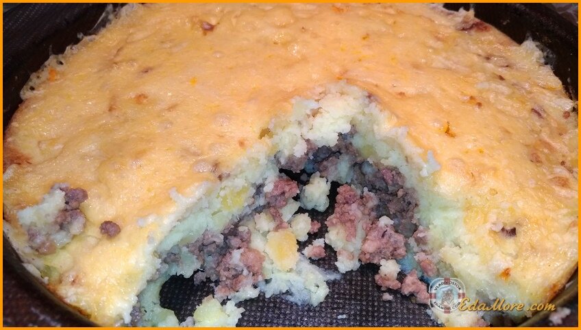 Друзья мои! Картофельная запеканка с некоторых пор стала нашей палочкой выручалочкой, когда ждем гостей или не хочется тратить много времени на готовку. Очень вкусное, сытное, а главное, не очень трудоемкое по исполнению блюдо. Нам потребуется (на противень диаметром 24-26 см): 🔹 Картофель – 8-10 штук. 🔹 Соль – 2 чайная ложка без горки. 🔹 Сырое яйцо – 2 шт. 🔹 Сливочное масло -100 гр. 🔹 Фарш любой – 400-500 гр. 🔹 Смесь перцев молотая – на кончике ножа. 🔹 Лук-репка небольшого размера – 1 шт. 🔹 Если есть, можно добавить пару веточек укропа. 🔹 Растительное масло рафинированное для смазки противня. Рецепт приготовления: 🔹 Картофель очистить и залить холодной водой так, чтобы слегка прикрыть картофель. Для быстрого закипания добавить небольшой кусочек сливочного масла в воду с картофелем, добавить чайную ложку соли. Сварить и превратить в пюре. Добавить сырые яйца и 100 граммов сливочного масла, хорошо взбить пюре. 🔹 Тем временем разогреть духовку при температуре 250 градусов в т