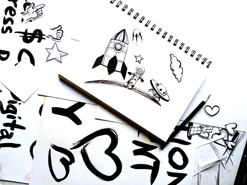 На правом рисунке есть ощущение, что ракета летит. Это ощущение для зрителя мы создали с помощью динамичной композиции за счет смещения угла наклона.