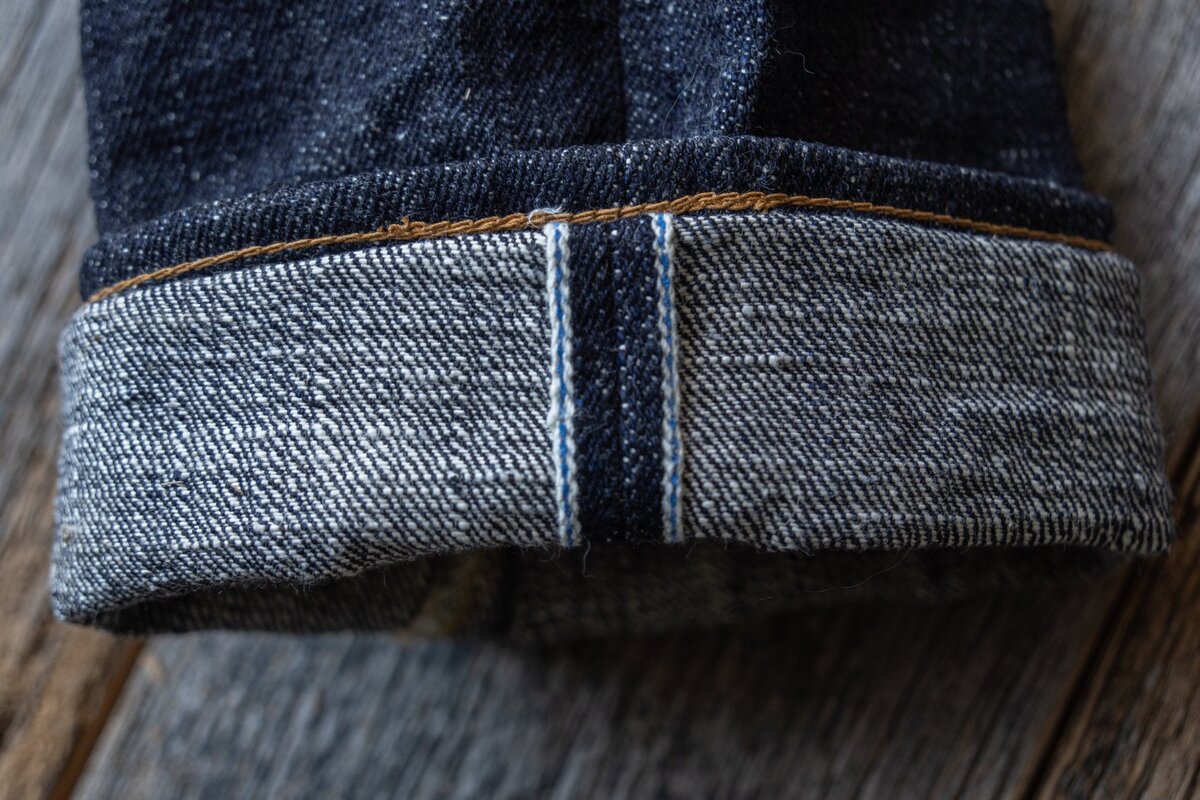 - AI – джинсы из денима плотностью 17,5 унций. Ткань окрашивается вручную в Токусиме. Используется краситель Sukumo. Пучок нитей погружают в краситель, а затем промывают несколько десятков раз, что дает глубокий цвет. Цифровое обозначение в названии означает крой. Цена доходит до 500 долларов;