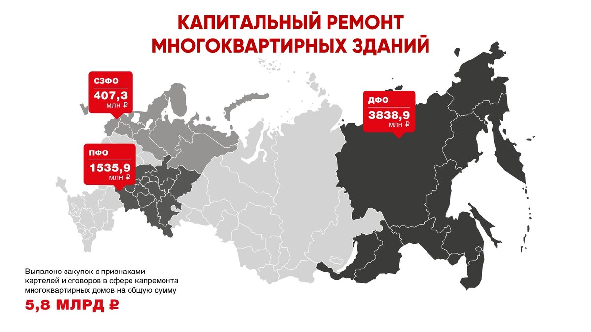Эксперты Бюро расследований совместно с ФАС России начали работу над новой "картой картелей". В этот раз под "прицел" попал капитальный ремонт многоквартирных домов.