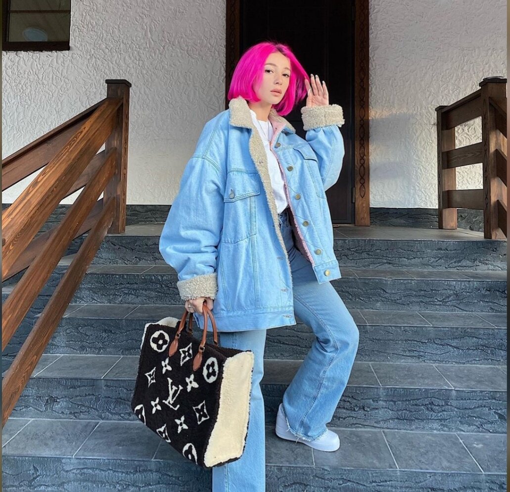 У Насти Ивлеевой свой, особенный стиль в одежде. Кому - то он может показаться странным, а кому - то ультрамодным. Посмотрим, что предпочитает звезда Instagram. Настя очень любит оверсайз, особенно куртки, в которых буквально утопаешь и расклешённые джинсы. А ещё девушка предпочитает бренд Луи Витон, сумки, которые часто можно увидеть на фото в инстаграме. Стиль Насти Ивлеевой спортивный. Девушка любит спортивные костюмы, предпочитая Adidas. Однако она часто разблавляет свой лук рокерскими вещами. Грубые ботинки на фото тому пример. Настю редко можно увидеть в обтягивающих джинсах. Чаще всего её фавориты - джинсы с посадкой mom-fit, брюки карго и расклешённые к низу. А ещё у Насти особая любовь к ярким, кислотным цветам как в одежде, так и в причёске. Каблуки в повседневной жизни она носит редко, обычно предпочитая кроссовкам. А вместо юбок - спортивные велосипедки. У Насти Ивлеевой много подписчиц, которые подражают ей в стиле одежды и у них даже можно найти похожие постаново