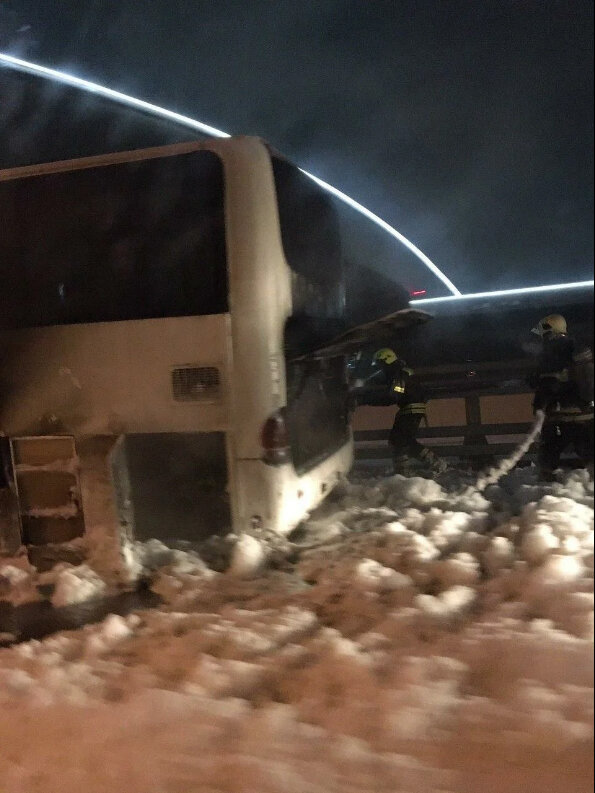 Огонь охватил полтора квадратных метра площади. В автобусе повреждён отопитель, колесо и частично моторный отсек.