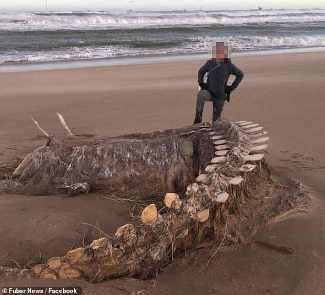 Штормом Сиара на берег выкинуло останки таинственного существа