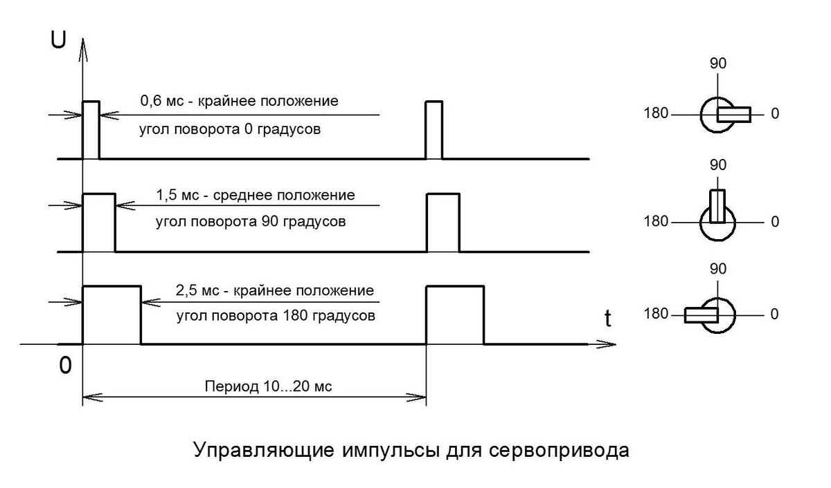 Т.е., для управления сервомашинкой надо собрать небольшую схемку, которая будет формировать необходимые импульсы.