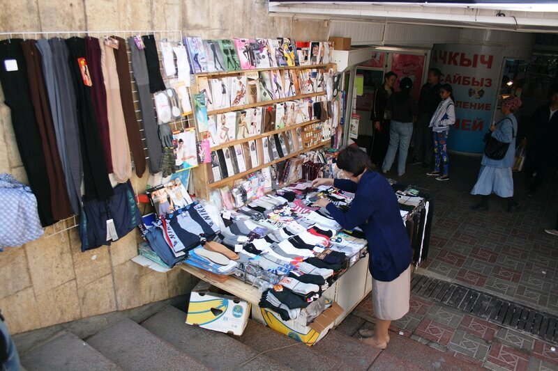 Одним из ярчайших впечатлений от посещения Бишкека была торговля. Там торгуют везде и всем. Такое ощущение, что вся суть жизни заключается в купле-продаже. Покупать необязательно. Важен процесс общения между покупателем и продавцом. При этом я не могу сказать, что сами киргизы общительные люди. Общительные люди живут скорее в Азербайджане или Грузии. В Киргизии, ровно, как и в Казахстане, народ более степенный, неэмоциональный и скупой на слова.