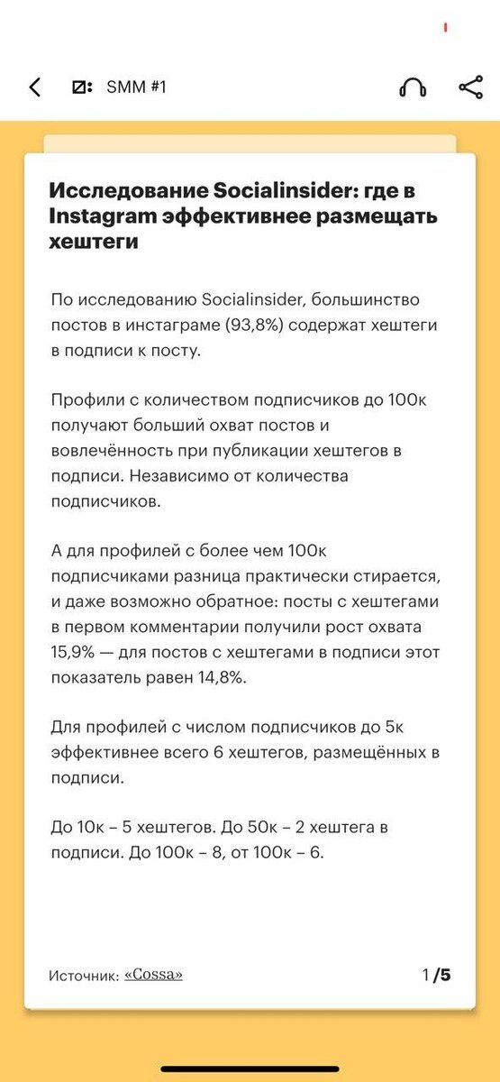 В конце прошлого лета Socialinsider в сотрудничестве с Quuu проанализировали 649 895 постов 6784 бизнес-аккаунтов с разным количеством подписчиков, чтобы выяснить, влияют ли хэштеги на охват. На основании этого некоторые "гуру" и разнесли миф об обязательных 6 хештегах в пост, и до сих пор на консультациях мне говорят: "Ну мне же сказали 6 и ни хештегом больше! Вот я и трясусь и боюсь лишнее поставить..." ⠀ Что ж, попробую доказать, почему не стоит к таким исследованиям подходить серьёзно. ⠀ Что нам говорят: ✔️по результатам исследования 87% бизнес-аккаунтов ставят теги в посте. В целом больший охват и вовлечённость посты получают при публикации тегов в тексте. ⠀ Вопрос. А не потому ли они имеют больший охват, что почти все их в пост пихают? ⠀ Дальше. ✔️"Использование хэштегов в тексте поста дает больший охват для постов мелких и средних профилей. Однако для аккаунтов, на которые подписаны более 100 тысяч пользователей, ситуация обстоит иначе" ⠀ Непонятно опять-таки, а они одинаково