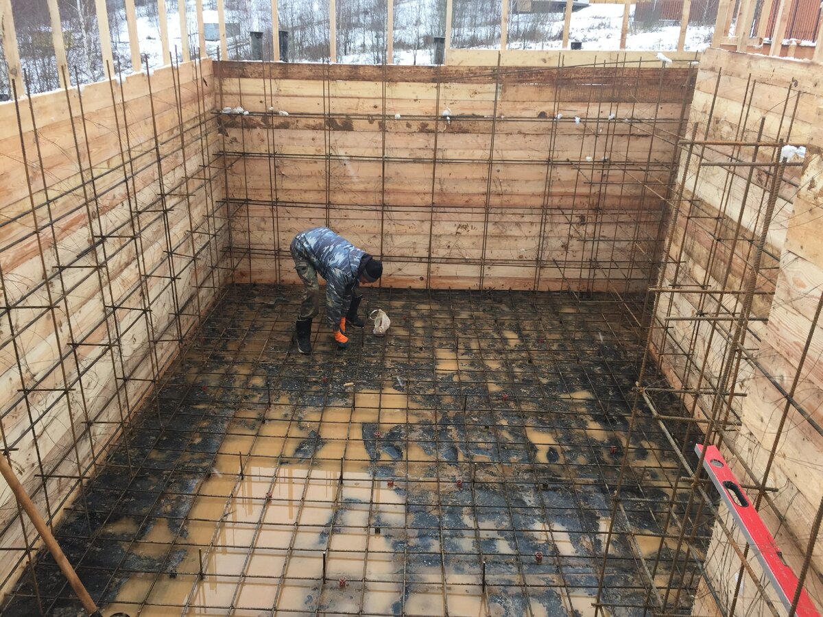 Мы нагружали Вас уже до этого информацией о гидроизоляции в предыдущих статьях: Правильная гидроизоляция, или как не попасть впросак Гидроизоляция фундамента в деревянных домах И сейчас мы хотим написать о еще паре моментов. А именно, монтаж. При этапе монтажа арматуры следует помнить что оклеечная гидроизоляция подвержена механическим повреждениям в холодное время года сильнее, чем в жаркие месяцы,и нужно использовать стульчики для арматуры (маленькая подставка для прутьев арматуры при создании просвета между изоляцией и металлом, минимальное расстояние 50 мм). После окончания монтажа арматуры следует визуально проверить нашу гидроизоляцию на предмет разрывов и задиров. При планирование приёма бетона помните, гидроизоляция хорошо работает в комплексе, а именно категорически запрещается заливать плиту основания в несколько подходов, в плите не должно быть холодных швов!!! Для примера вот Вам наш недавний случай: Молодая семья купила коттедж 12х12, уже в готовом виде и ей остав