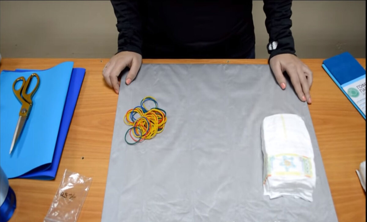 Недавно у моей подруги был Baby Showe. Если вы не знаете, что это, рассказываю вкратце - это вечеринка для беременной, где подружки приносят подарочки, поздравляют с будущую мамочку с ее прекрасным новым статусом, ну а уже опытные мамочки дают советы по материнству. Так вот, решила сделать я подружке подарок, который также служил декором на празднике. Делается легко и просто. Для замка из подгузников понадобится: (двухсторонний скотч, цветную бумагу и сжатую бумагу можно купить в канцелярском магазине) Подгузники собираем в рулончики и фиксируем резинкой. Центр собираем из 7 рулончиков и их также фиксируем резинкой. Дальше укладываем спираль из ровных, не скрученных памперсов и также фиксируем резинкой. Я связала 3 резинки вместе, чтоб получилась одна большая. Далее, по краям, выкладываем свертки в два ряда. И первый слой готов! Сжатую бумагу, не заворачивая, режем поперек одним отрезом, высотой с рулончик. Два края по очереди растягиваем и получается такой красивый волнистый кр