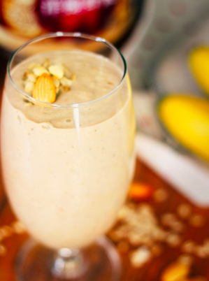 ► Завтраки / бутерброды ► Чай / напитки ► Смузи с бананом "1-5" № 6. Бананово-овсяный смузи ИНГРЕДИЕНТЫ: ПРИГОТОВЛЕНИЕ: Засыпать все ингредиенты в блендер и измельчить до однородного состояния. № 7. Банановый смузи с голубикой ИНГРЕДИЕНТЫ: ПРИГОТОВЛЕНИЕ: 1. С вечера замачиваем изюм и овсянку в молоке или воде, чтобы жидкость чуть прикрывала смесь, и убираем на ночь в холодильник. 2. Банан, голубику, мед, молоко (воду) перемешиваем в блендере до однородной массы. 3. К получившейся смеси добавляем овсянку и изюм. И подаем к столу. Можно украсить ягодами черники. Совет к рецепту: В пост или по вашему вкусу можно заменить на обычную воду, миндальное или соевое молоко. Голубика и черника похожи по своим свойствам, поэтому их можно легко заменять в рецептах. № 8. Бананово-клюквенный смузи с овсяными хлопьями и семенами льна ИНГРЕДИЕНТЫ: ПРИГОТОВЛЕНИЕ: 1. Банан очистить и нарезать. 2. Все ингредиенты измельчить в блендере, до однородной массы. ► Овсяноблин с яблоком ► Овсяноблин с сыром