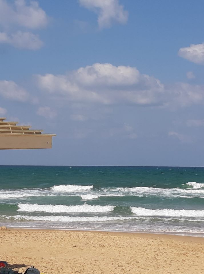 Какая-то мама научила сына подпрыгивать, встречая волну и он, радостный, скачет в волнах. Некоторые вошли в воду по колено. Типа, мелко - безопасно. Как же их треплет!